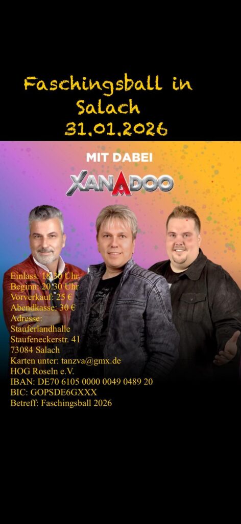 XANADOO liefern dazu Schlager vom Feinsten, um mit euch gemeinsam die Stauferlandhalle zum Beben zu bringen.
